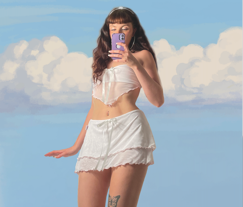 luxe white mesh tie back set, last one ever
